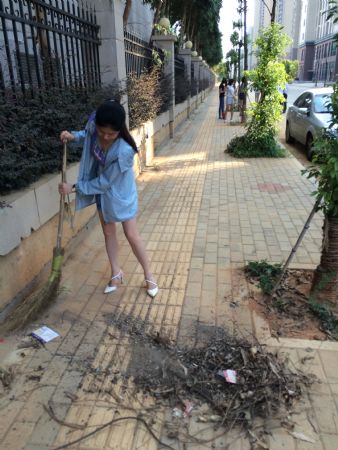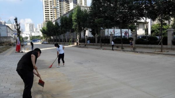 虽然当天天气炎热,但志愿者们不怕脏、不怕累,现场呈现出一派热火朝天的劳动景象。大家两三人一组分片包干,仔细地清扫路面,铲除路沿石边泥沙,清理人行道、绿化带里的树枝落叶和纸屑,并洒水冲扫路面沙尘。人多力量大,经过志愿者们三个多小时的艰辛劳动,共清扫面积4000余平方米,清除卫生死角11处,清理垃圾1卡车,使总部经济区周边环境面貌焕然一新,赢得了总部经济区各入驻商及过往市民的赞许。