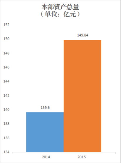 2015年,集团(本部)资产总量达149.84亿元,同比增长7.3%。