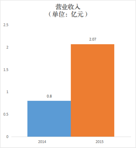 2015年,实现营业收入2.07亿元,同比增长158%。