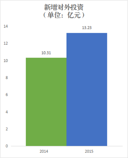 2015年,新增对外投资13.23亿,同比增长28%。