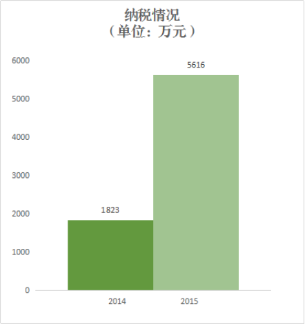 2015年,上缴税金5616万元,同比增长208%。