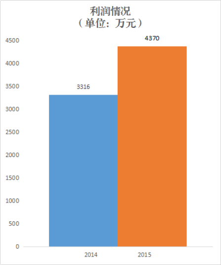 2015年,实现利润4370万元,同比增长31%。