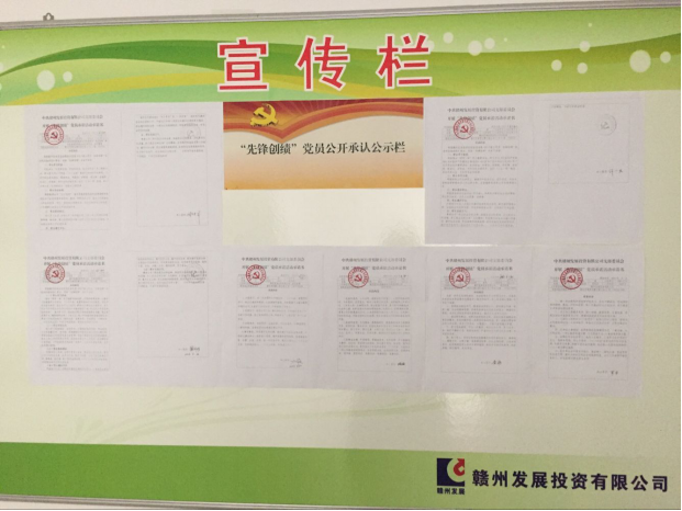 6月30日,在投资公司党支部召开的“两学一做”第二专题“立足本职岗位 发挥模范作用”学习大会上,支部全体党员在现场佩戴党徽,结合《党章》要求、联系自身工作实际在党员“先锋创绩”承诺书上签字承诺,在场的党员表示,要牢记党员的义务和使命,在各自的岗位发挥好模范作用。