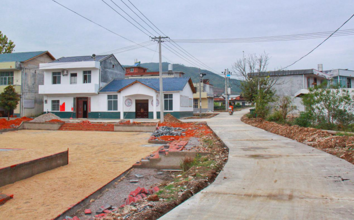 11月9日,初冬的杨梅村生机盎然,重新修补硬化的村道向远处延伸,预留较宽的路肩及庭院将种上果树,路旁大面积的芋田里已经套种了叶子菜。