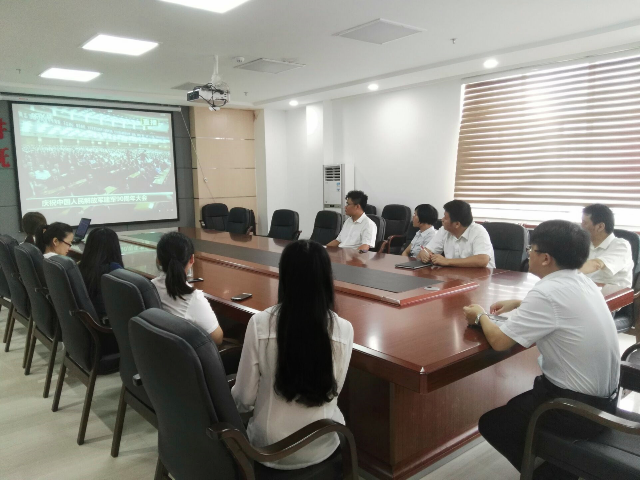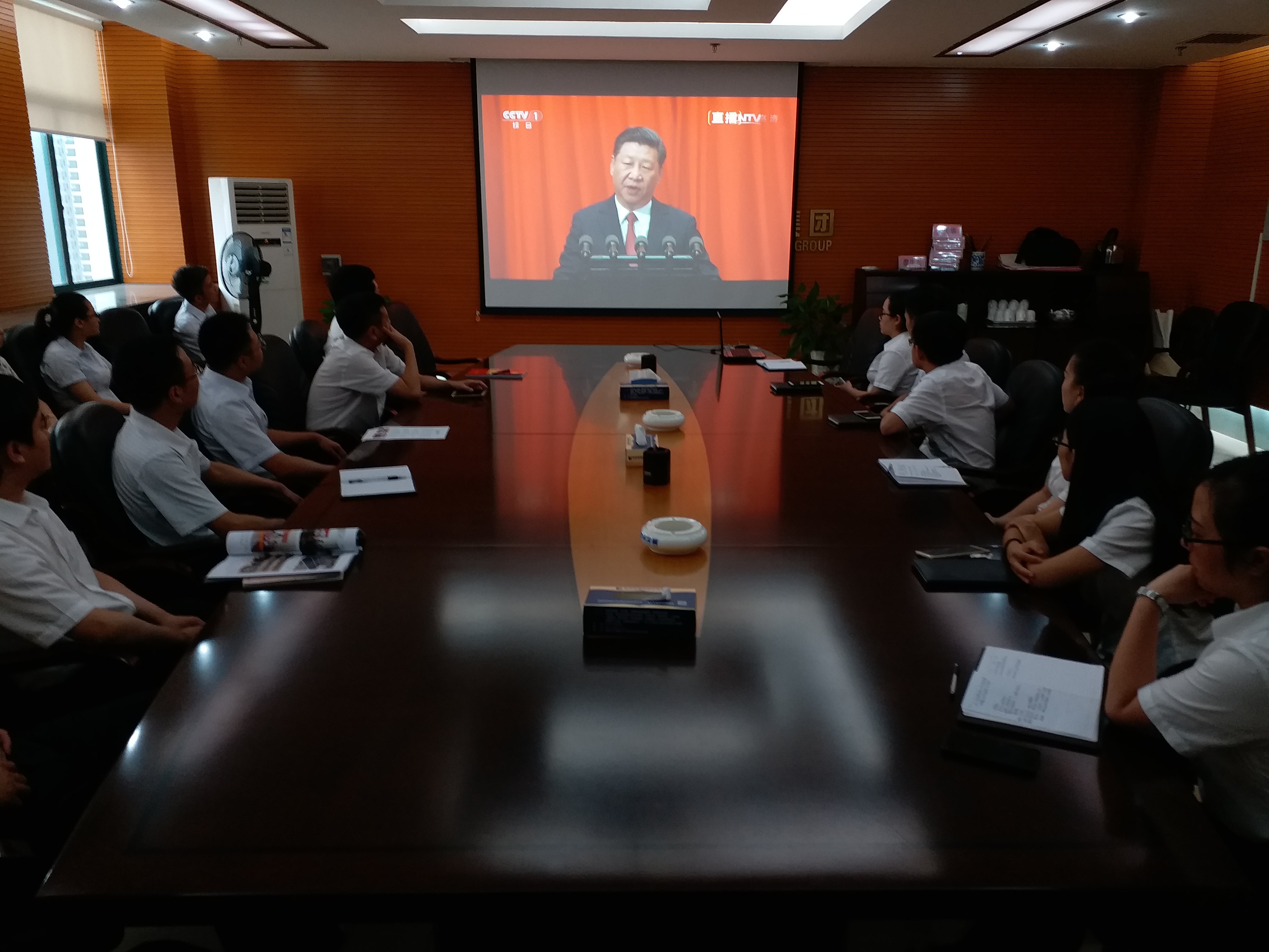 8月1日,集团组织干部职工集中收看了中央军委举行的庆祝中国人民解放军建军90周年大会直播,聆听习近平总书记的重要讲话。集团领导及机关员工在18楼会议室收看,各子公司分别组织了收看。