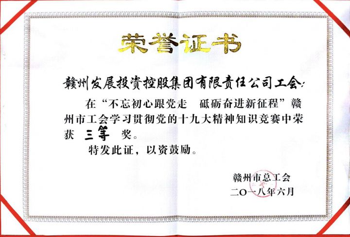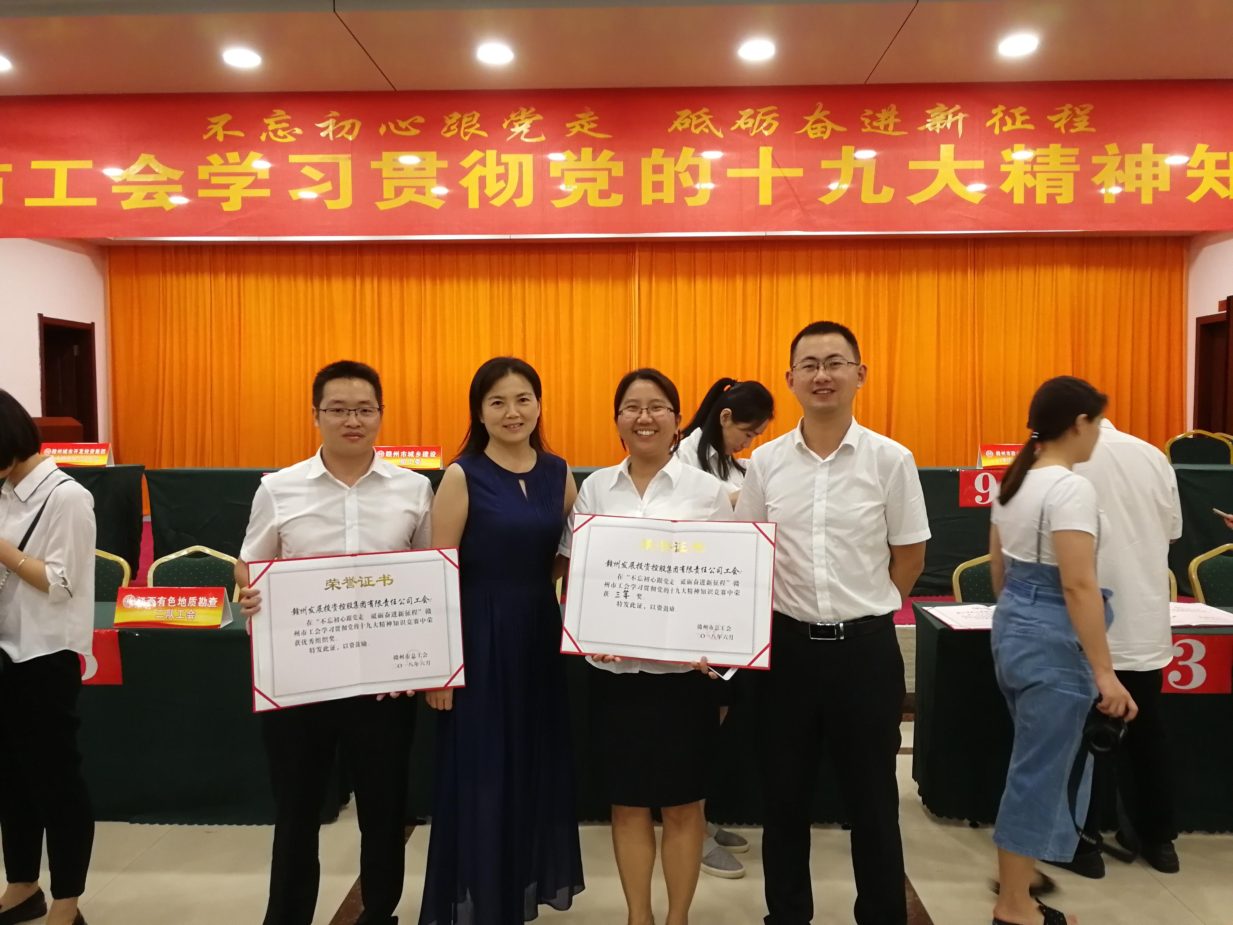 日前,集团工会积极组织广大干部职工参与市总工会在全市工会举办“不忘初心跟党走 砥砺奋进新征程”学习贯彻党的十九大精神知识竞赛。集团工会选拔出的三名选手经过激烈的角逐获得三等奖。集团工会还荣获本次竞赛“优秀组织奖”。