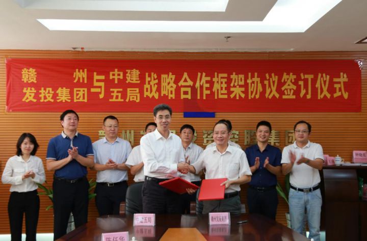 9月29日,集团与中国建筑第五工程局有限公司(中建五局)举行战略合作框架协议签约会,双方就在赣州市基础设施建设、地产开发、设备融资租赁、主材供应等深化合作方面进行了洽谈,并签订了《赣州市投资开发、基础设施建设项目战略合作框架协议》,合作规模约100亿元。集团党委副书记、董事长李贱贵,中建五局党委书记、董事长田卫国代表双方签约。
