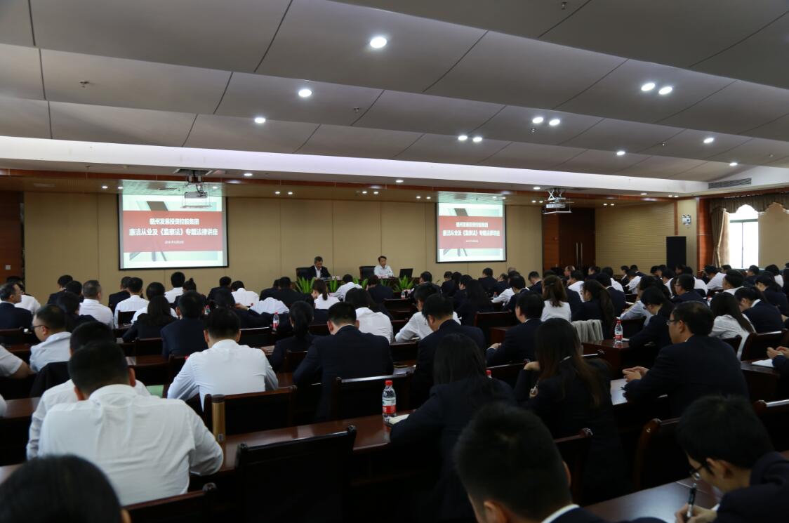 为进一步加强党风廉政教育,深入学习贯彻《监察法》,10月30日,集团在新时代文明实践中心举办廉洁从业及《监察法》专题法律讲座,特别邀请了江西南芳律师事务所合伙人会议主席、法学博士范卫权律师进行授课。集团领导班子成员、中层干部、全体党员、各全资、控股子公司业务、风控人员及集团全体财务人员共计140余人参加学习。