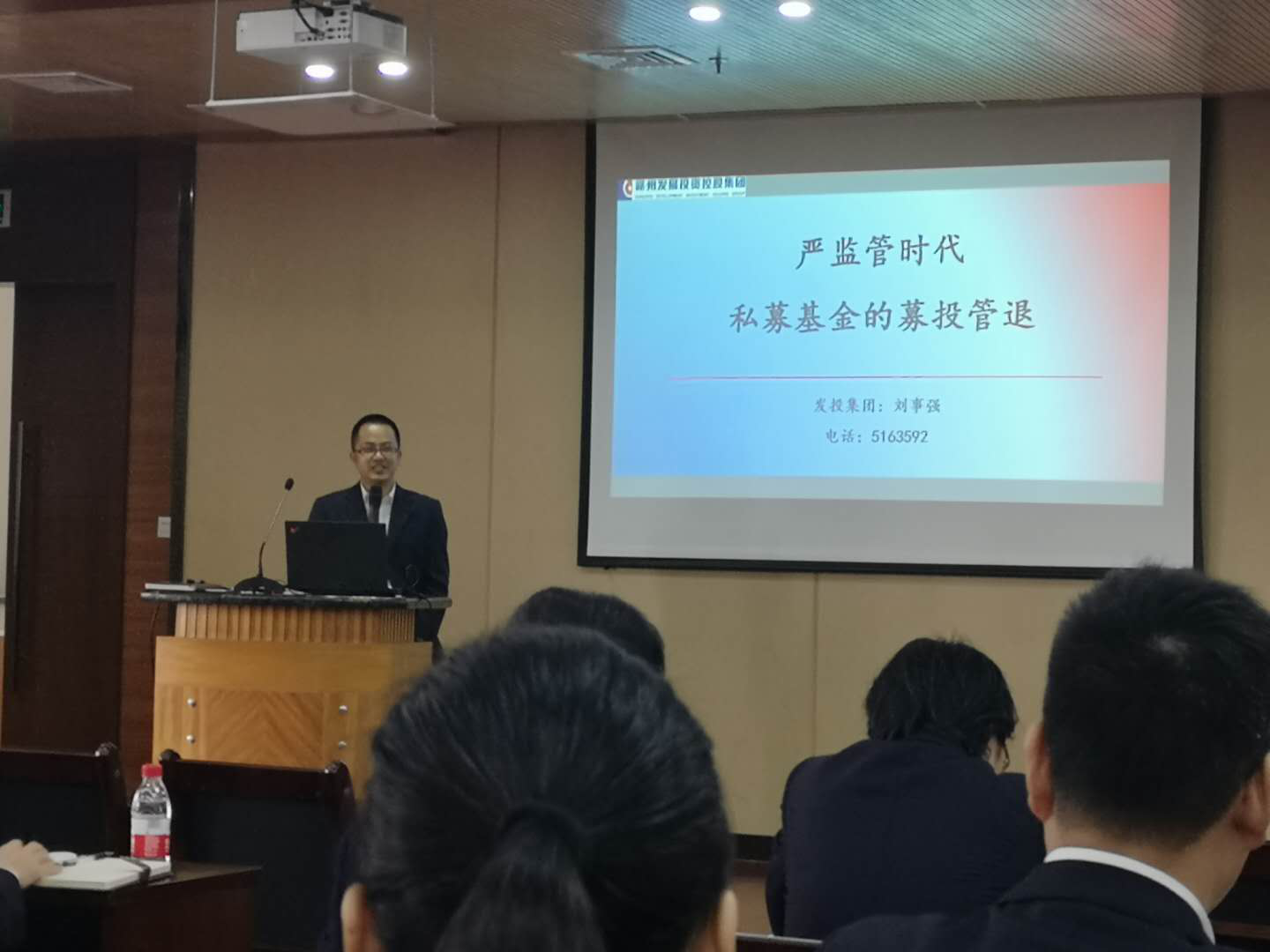 为进一步提升员工业务水平,拓宽知识面,加强交流思想,4月13日,集团在新时代文明实践中心组织开展了“员工大讲堂”活动,基金公司风控总监刘事强以《严监管时代私募基金的募投管退》为题授课。