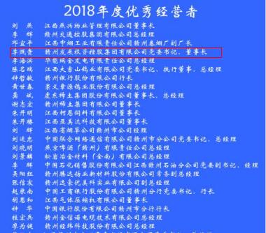 7月23日上午,由赣州市工业和信息化局主办,赣州市企业联合会、赣州市企业家协会协办的年度企业家表彰大会在赣南宾馆举行。集团党委书记、董事长李贱贵荣获“2018年度优秀经营者”称号。