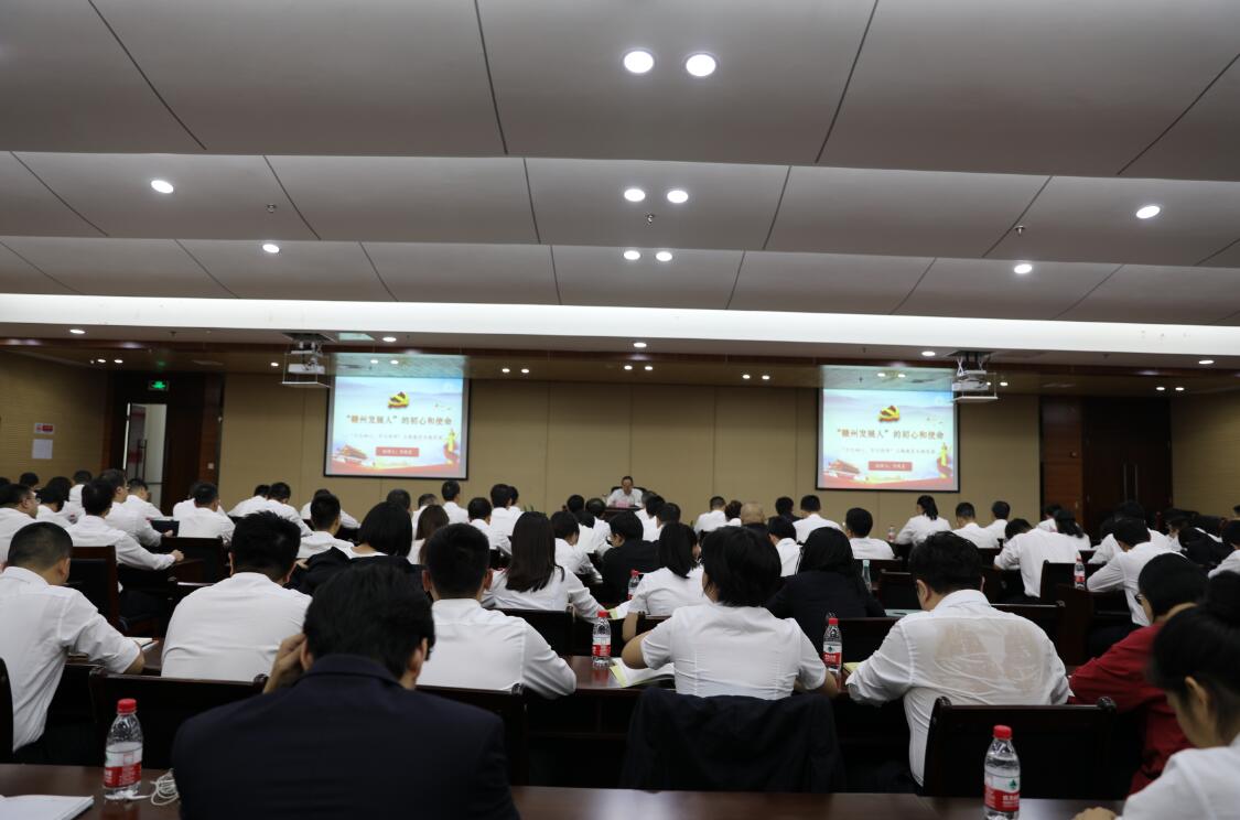 10月25日下午,集团党委书记、董事长李贱贵讲授了题为《“赣州发展人”的初心和使命》主题教育专题党课。市委第十七巡回指导组李会兴同志到会指导。集团党委班子成员、中层管理人员、全体党员共计130余人参加。在专题党课中,李贱贵结合主题教育以来自己的学习体会和调研成果,深刻阐述了学习习近平新时代中国特色社会主义思想心得、分享了对初心使命的感悟,剖析了集团在思想、工作、作风存在差距和短板,讲清了改进工作的思路措施。党课主题明确、重点突出、内容丰富,既有学习的理论内涵,又有工作的实践经验。