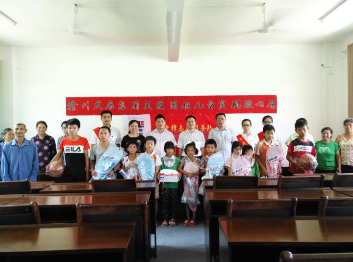 集团定期到定点帮扶贫困村——南康区浮石乡圳玄村开展关心下一代公益活动,先后为全村101名少年儿童送上书包、文具、运动衣、鞋、篮球、台灯、电子手表等物品,实现贫困留守儿童的“微心愿”。利用“假日学校”,集中全村青少年开展防火、防溺水、防交通事故等安全常识教育。集团扶贫工作队为全村40户64名贫困子女学生办理教育助学补助。同时,集团投入20万元在村新建教学点。