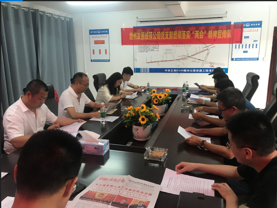 近日,为贯彻落实全国“两会”精神,城镇公司党支部成立了全国“两会”精神宣传队,奔赴G105赣州中心城区改线工程各区段项目部开展宣讲活动。
