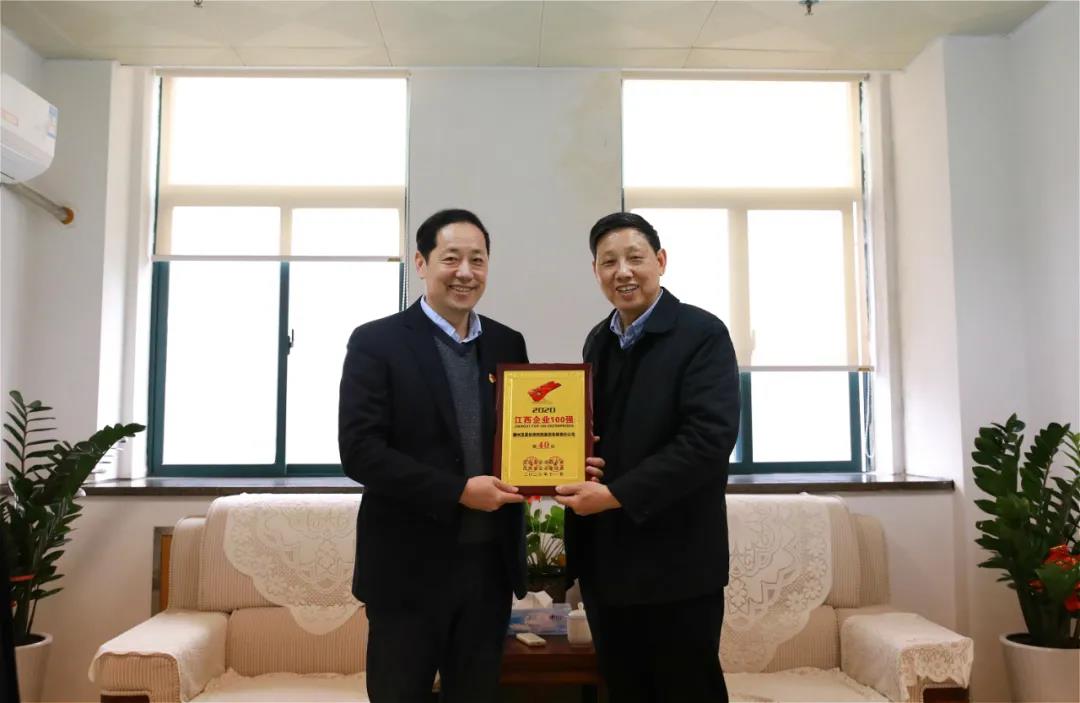 1月26日上午,赣州市企业联合会会长刘琮、常务副会长兼秘书长李勃一行莅临必赢242net官网,向集团党委副书记、总经理杨晓斌授予“2020江西企业100强第40强”奖牌。集团在家的领导班子成员参加了座谈。
