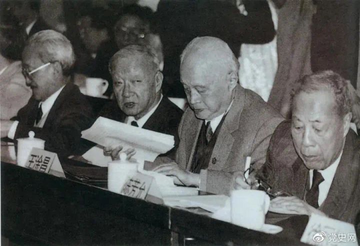 1986年3月,由4位老科学家倡议,经邓小平批示,中国制定实施了高技术研究发展计划。图为“863”计划的4位倡导人王大珩(左2)、王淦昌(左3)、杨嘉墀(左1)、陈芳允(左4)。