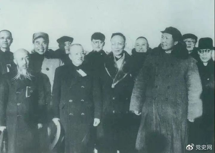 1949年3月,各界人士代表在北京西苑机场同毛泽东、朱德等留影。