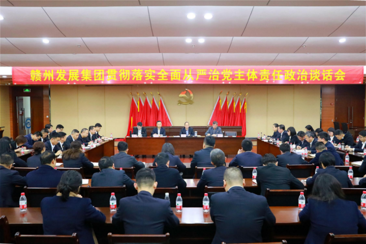 为加强对“一把手”和领导班子的监督,持续推进集团全面从严治党工作向纵深发展,4月19日,必赢242net官网党委组织召开贯彻落实全面从严治党主体责任集体政治谈话会。会议由集团党委委员、纪委书记谢斌主持,集团党委书记、董事长李贱贵出席并讲话,集团在家班子成员、各党支部书记、各部门、各子公司主要责任人,集团其他中层以上干部共有50余人参加会议。