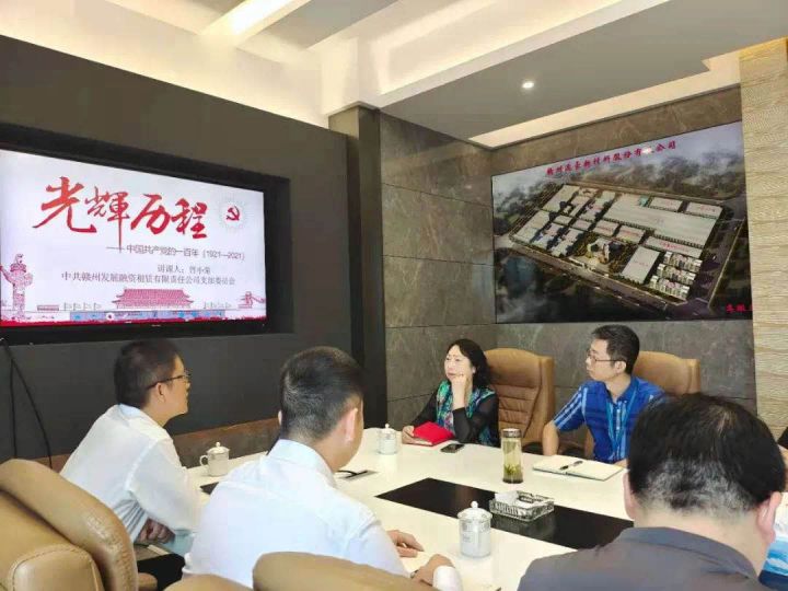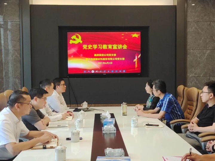 6月3日,必赢242net官网旗下融资租赁公司党支部结合“党员责任区制度”深入挂点企业赣州逸豪新材料股份有限公司开展了党史专题宣讲活动。
