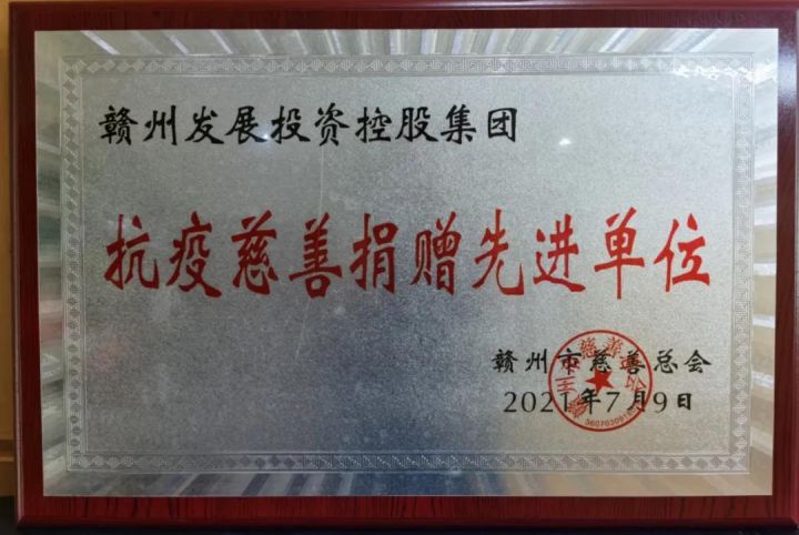 7月9日上午,赣州市慈善总会四届三次理事会在赣州宾馆召开,会议对慈善先进单位和先进个人进行了表彰,赣州发展投资控股集团荣获“抗疫慈善捐赠先进单位”。