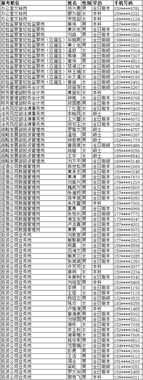 赣州发展投资控股集团公开招聘入围笔试人员名单公示