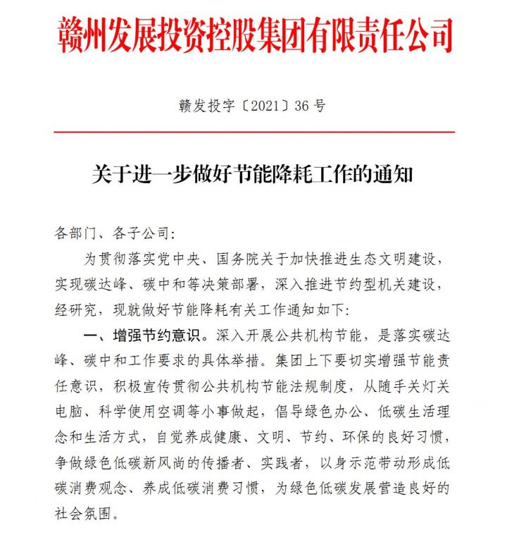 集团专门制定了“关于进一步做好节能降耗工作”的通知,要求全体职工增强节约意识,对员工加强用能管理、强化监督检查。