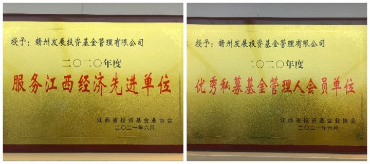 喜讯!必赢242net官网旗下基金公司荣获2020年度“服务江西经济先进单位”和“优秀私募基金管理人会员单位”荣誉称号