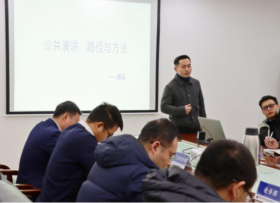 集团文宣部施品受邀作了题为“公共演讲的路径与方法”专题分享。他从“学习公共演讲的必要性、克服沟通恐惧、讲稿设计、演讲练习方法”等四个方面深入浅出的分析了“为什么要学习公共演讲”及“如何做好公共演讲的方法和技巧”等问题。分享过程中,通过视频案例和模仿的方式生动再现了公共演讲焦虑的表现形式及克服沟通焦虑的方法,他详细介绍了演讲稿件设计、演讲风格选择、演讲技巧训练等技巧。培训现场,掌声迭起,全体参与者聚精会神聆听了整场分享并积极互动。
