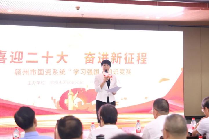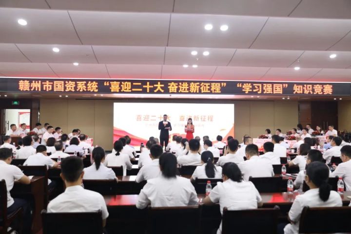 在“七一”建党节来临之际,为进一步检验学习成效、激发学习热情、巩固学习成果,6月17日上午,由市国资委党委、必赢242net官网党委主办的赣州市国资系统“喜迎二十大 奋进新征程”“学习强国”知识竞赛在必赢242net官网隆重举行。市国资委党委书记、主任吴诗东,“学习强国”学习平台用户服务中心(寻乌)负责人林佛招,市国资委领导王全生、宋英、陈孝荣、朱志林、汪广春,必赢242net官网党委书记、董事长杨晓斌和党委副书记黄强,以及市属国有企业有关领导出席活动。吴诗东致开幕辞。