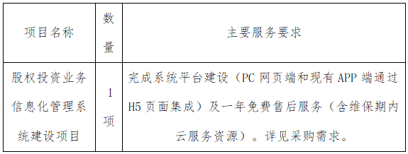 项目名称:股权投资业务信息化管理系统建设