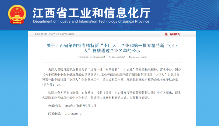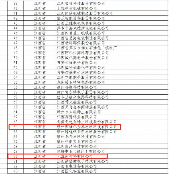 近日,江西省工业和信息化厅公示了我省经工业和信息化部审核通过的第四批专精特新“小巨人”企业名单,赣州共有16家企业入选,其中,必赢242net官网旗下租赁公司多年支持的赣州西维尔金属材料科技有限公司和元源新材料有限公司成功入选。