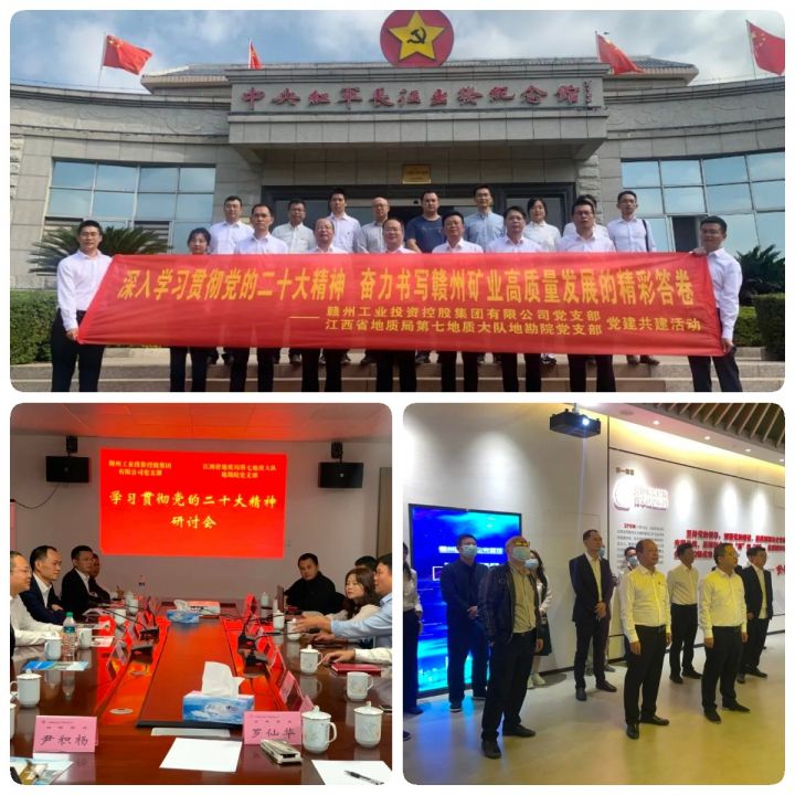 10月30日,赣州工控集团党支部联合第七地质大队地勘院党支部以“深入学习贯彻党的二十大精神 奋力书写赣州矿业高质量发展的精彩答卷”为主题开展党建共建活动。