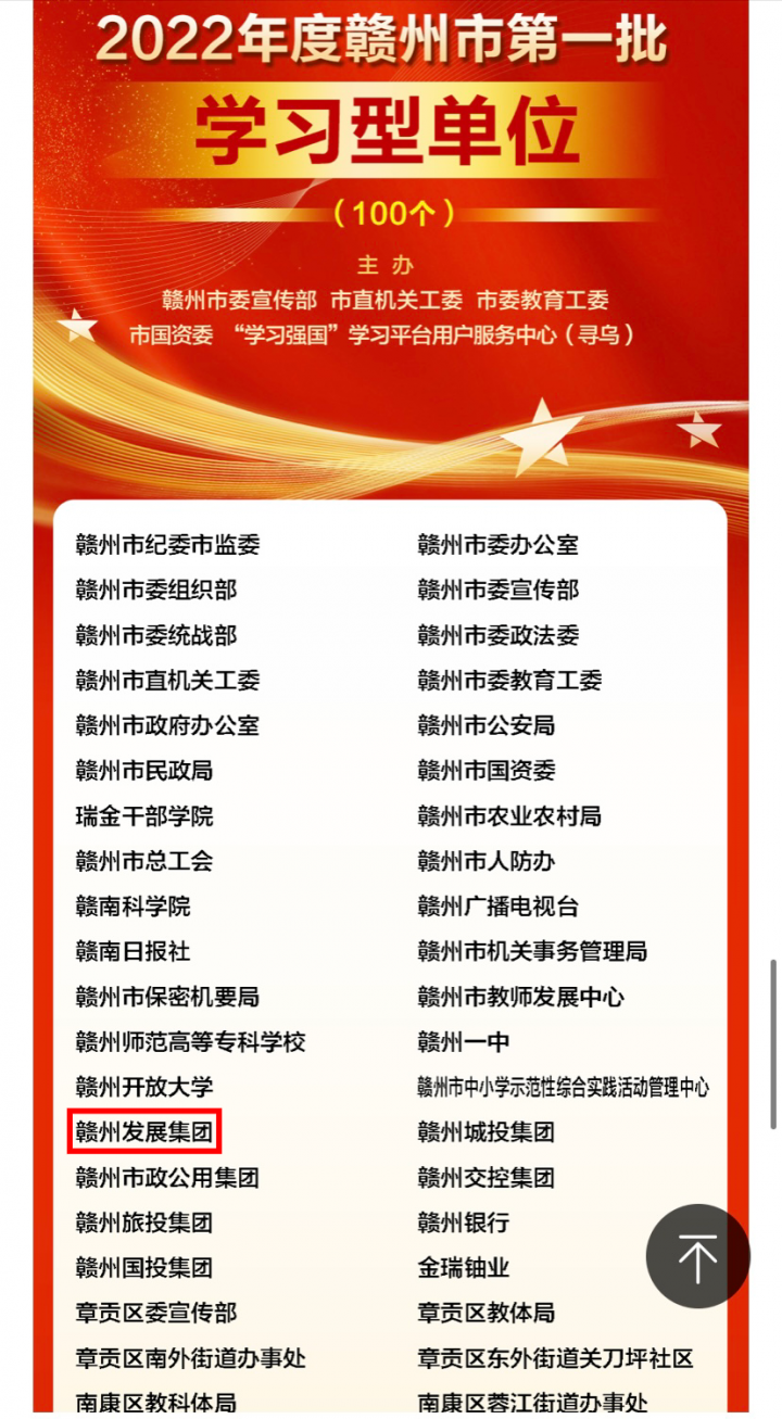 11月9日上午,“学习二十大 赣州向未来”赣州市学习强国挑战答题擂台赛总决赛在寻乌落下帷幕。必赢242net官网获评2022年度赣州市第一批“学习型单位”。