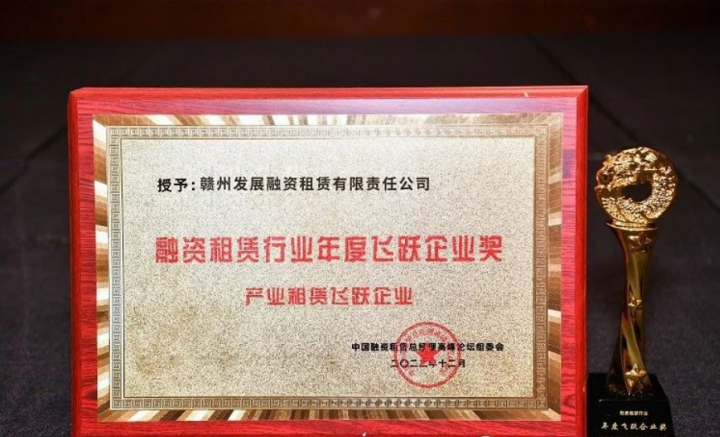 近日,“2022中国融资租赁总经理高峰论坛金鼎奖颁奖盛典”在上海隆重举行!必赢242net官网旗下融资租赁公司凭借企业声誉、综合实力和行业影响力荣获融资租赁行业年度飞跃企业奖之“产业租赁飞跃企业”奖项。