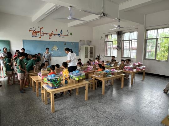集团青年志愿者们来到麻州镇中心小学幼儿班,带来了事先收集并采购的22名留守儿童“微心愿”,有书包、绘画本、马克笔、贴纸、水杯、芭比娃娃、拼装车等志愿者们精挑细选的儿童节礼物,收到礼物的孩子们脸上洋溢着天真幸福的笑容。
