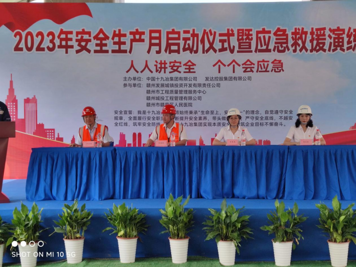 “我坚决做到:遵守规章制度,遵守规范规程、遵守劳动纪律,不出事故、不出次品、不留隐患!我将以实际工作行动,铸精品工程,创一流业绩!”慷慨激昂的安全宣誓响彻在项目一线。6月6日,赣南大道三标、东江源快速化改造工程等项目组织召开“人人讲安全、个个会应急”为主题的“安全月”启动仪式暨应急救援演练活动。现场根据建筑施工领域特点和潜在的各类风险隐患,有针对性地开展建筑施工领域预防高处坠落、坍塌、物体打击、高温中暑等事故应急救援及消防应急演练,进一步压实从业人员安全岗位责任,熟悉了解逃生出口和避难路线,提高预防和处置突发生产安全事故能力。