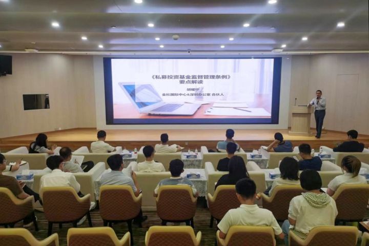 本次培训邀请了北京金杜(深圳)律师事务所合伙人胡耀华律师、林嘉律师针对《私募投资基金业务法律及合规》进行了专题授课。胡耀华律师对7月9日公布的《私募投资基金监督管理条例》进行了详细解读,重点讲解了私募股权投资基金的投资范围、限制及相应的风险控制措施,并结合监管要求对国有企业持有私募投资基金资金募集、投资运作、负面清单、退出机制等进行了专业讲解。