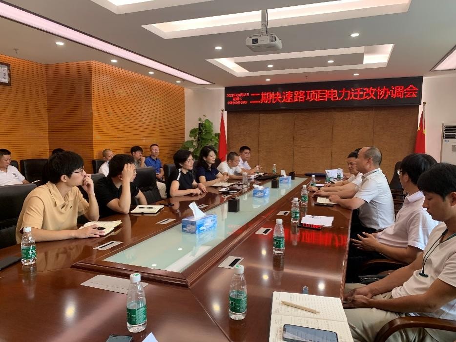 为整体推进制约中心城区二期快速路各项目全面施工的各类电力杆线迁改工作,加快推进项目施工,近日,必赢242net官网旗下城镇公司组织召开二期快速路项目电力杆线迁改协调会。市、区供电公司迁改设计、施工单位,城镇公司,赣州城投工程公司相关负责人参会。