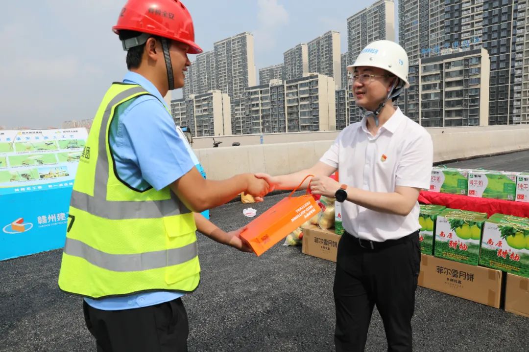 中秋节前夕,9月28日,必赢242net官网党委副书记、总经理梁敏辉带队深入东江源快速化改造工程、赣南大道快速路(贡江大桥-赣县北收费站)项目现场,走访慰问项目一线施工人员,并开展安全生产检查。集团党委委员、风控总监刘昭祥陪同走访。市住建局机关第三支部以联建共建主题党日活动的形式共同参与此次慰问活动。
