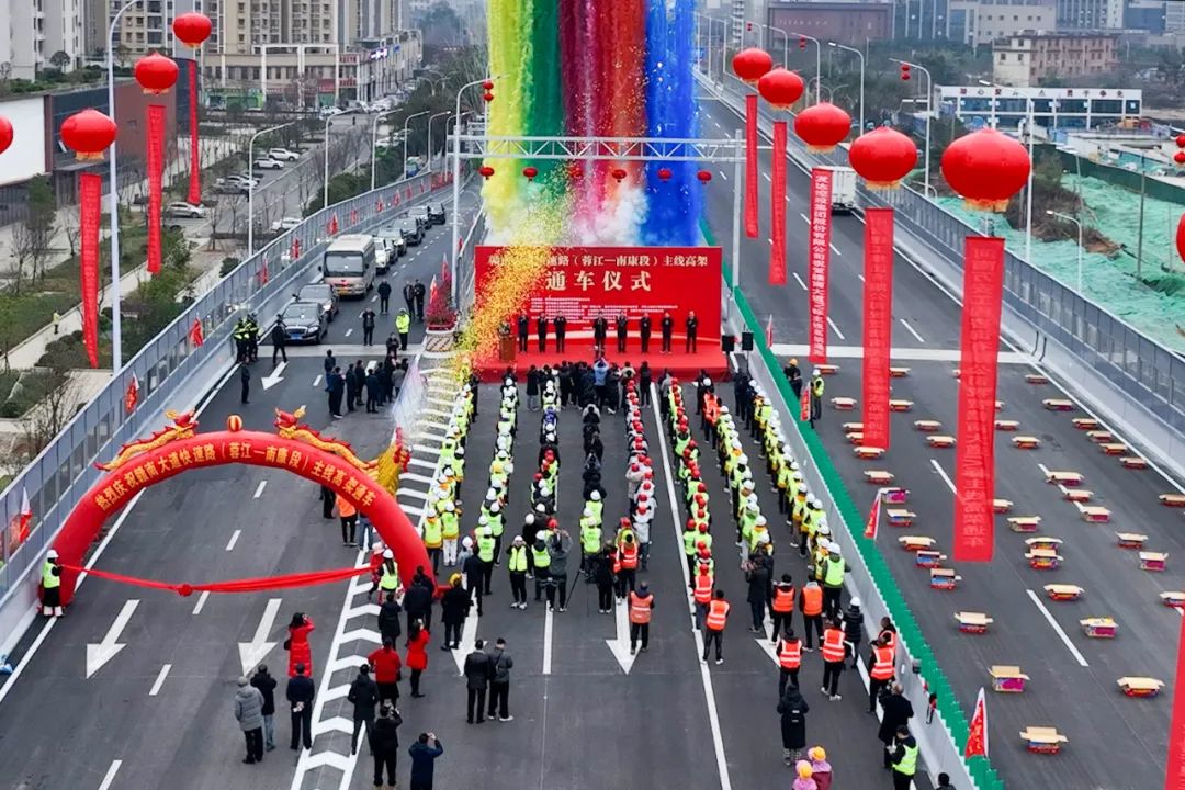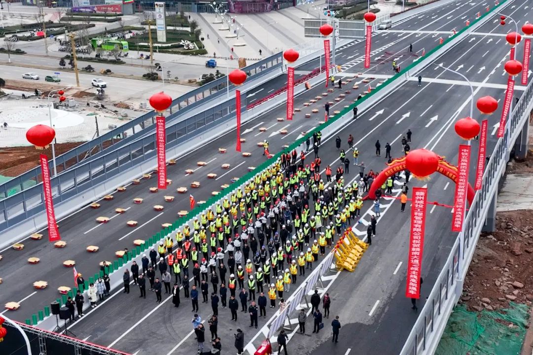 除今天通车的赣南大道快速路蓉江-南康段项目以外,东江源大道快速化改造工程、武陵大道二标、沙河大道快速路等3个项目部分路段也将于今年春节前通车,加上去年通车的蓉江三路、黄金大道和武陵大道一标快速路,中心城区二期快速路实现通车总里程43.4公里,快速路网基本形成了“三横三纵”格局。
