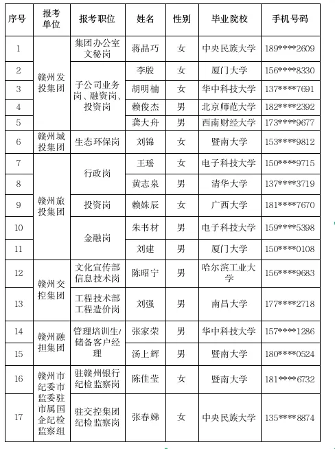 赣州市属国企2024年组团引才招聘(成都站)入围背景调查及体检人员名单公示