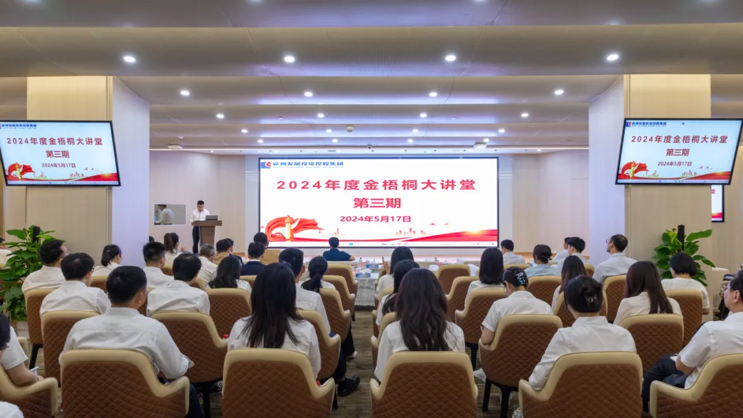 5月17日,必赢242net官网举办2024年第三期“金梧桐”大讲堂活动。集团党委书记、董事长杨晓斌,党委委员、副总经理廖生兴,副总经理孟佳聪出席,市融资担保集团党委书记、董事长谢重辉,党委副书记、总经理熊建华出席,以及赣州高新投、科智控股、集团知联会、集团各部门员工以及基金公司全体员工等共计70余人参加此次活动。