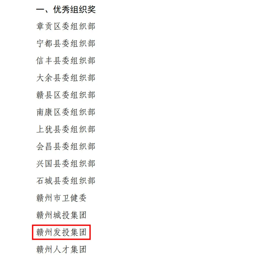 ▲赣州发投集团荣获全市“优秀组织奖”