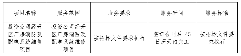 投资公司经开区厂房消防及配电系统维修项目的竞争性谈判成交结果公告