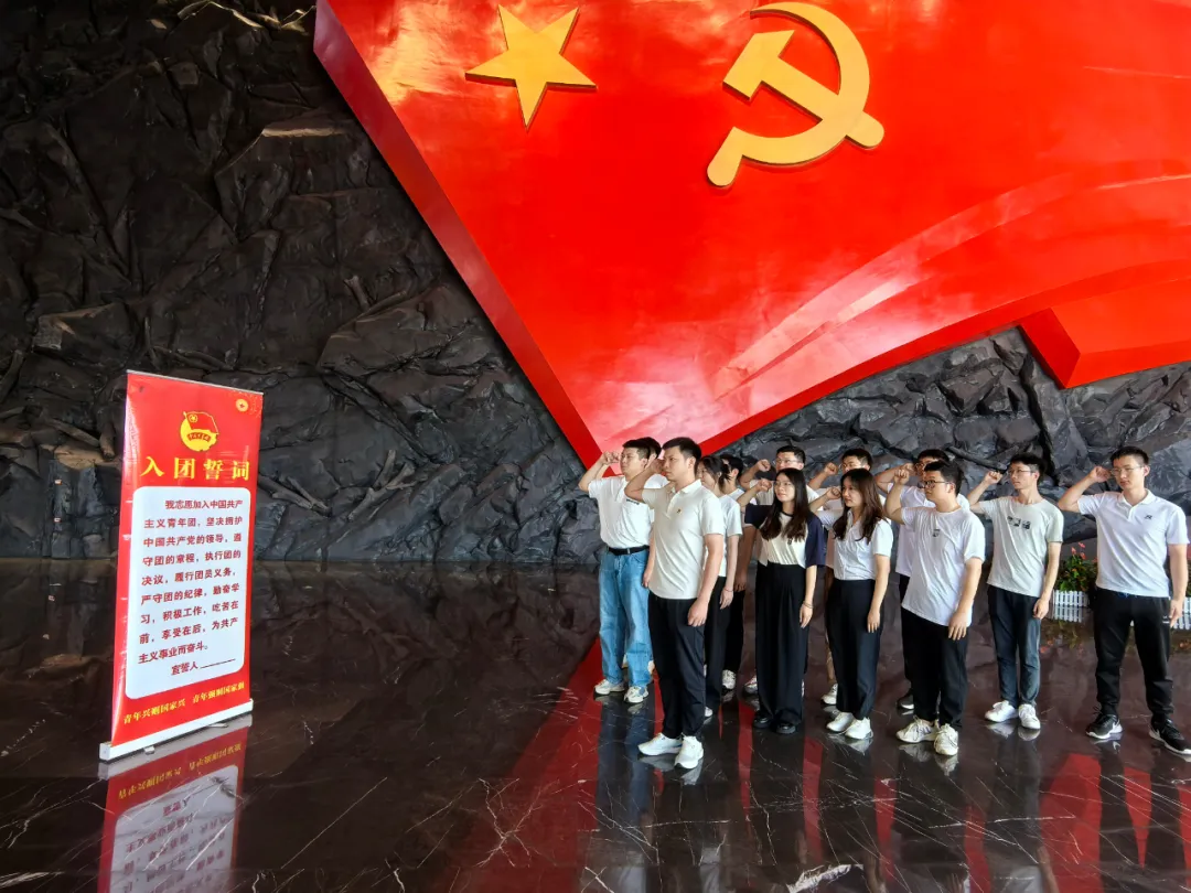 在大厅广场,青年团员重温入团誓词,用誓词表达对党的崇高信仰和无限忠诚,以及为党的事业不懈奋斗的决心。