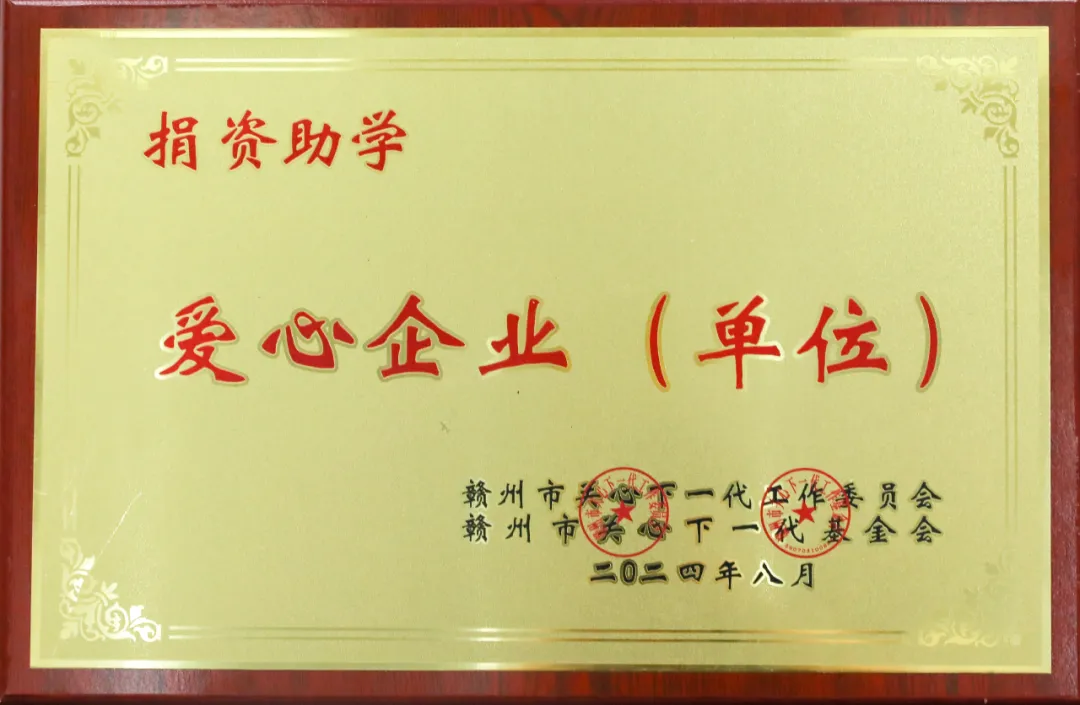 必赢242net官网获“赣州市关心下一代基金会作出突出贡献的爱心企业”称号