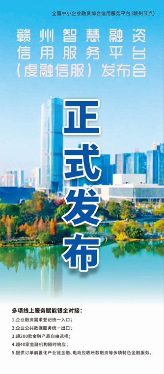 据悉,赣州智慧融资信用服务平台(虔融信服)是我市积极响应国家及省关于统筹融资信用服务平台建设提升中小微企业融资便利水平决策部署的重要体现,是围绕江西省融资信用服务“赣融信服”品牌打造的子品牌,作为全国融资信用服务平台的地方节点,旨在为赣州市中小微企业构建“一站式”融资对接及信用服务应用总控和服务总台,平台由市政府办、市发改委、人民银行赣州市分行、赣州金融监管分局指导,赣州发展投资控股集团建设运营,打造了企业融资需求登记统一入口(一码贷)、企业公共数据服务统一出口,超200款金融产品可自由选择,超40家金融机构随时响应,并且通过订单前置化产业链金融、直播电商应收账款融资等多项特色金融服务赋能银企对接。