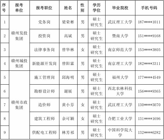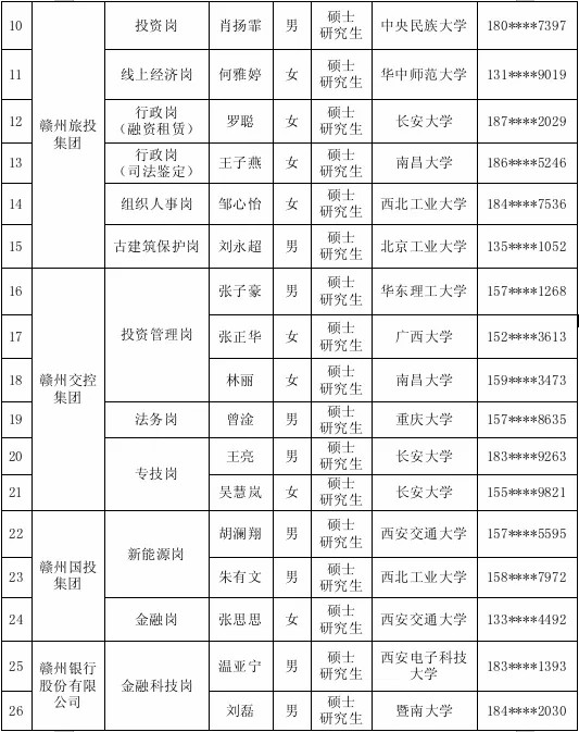 赣州市属国企2024年组团引才(西安站)入围背景调查及体检人员名单公示