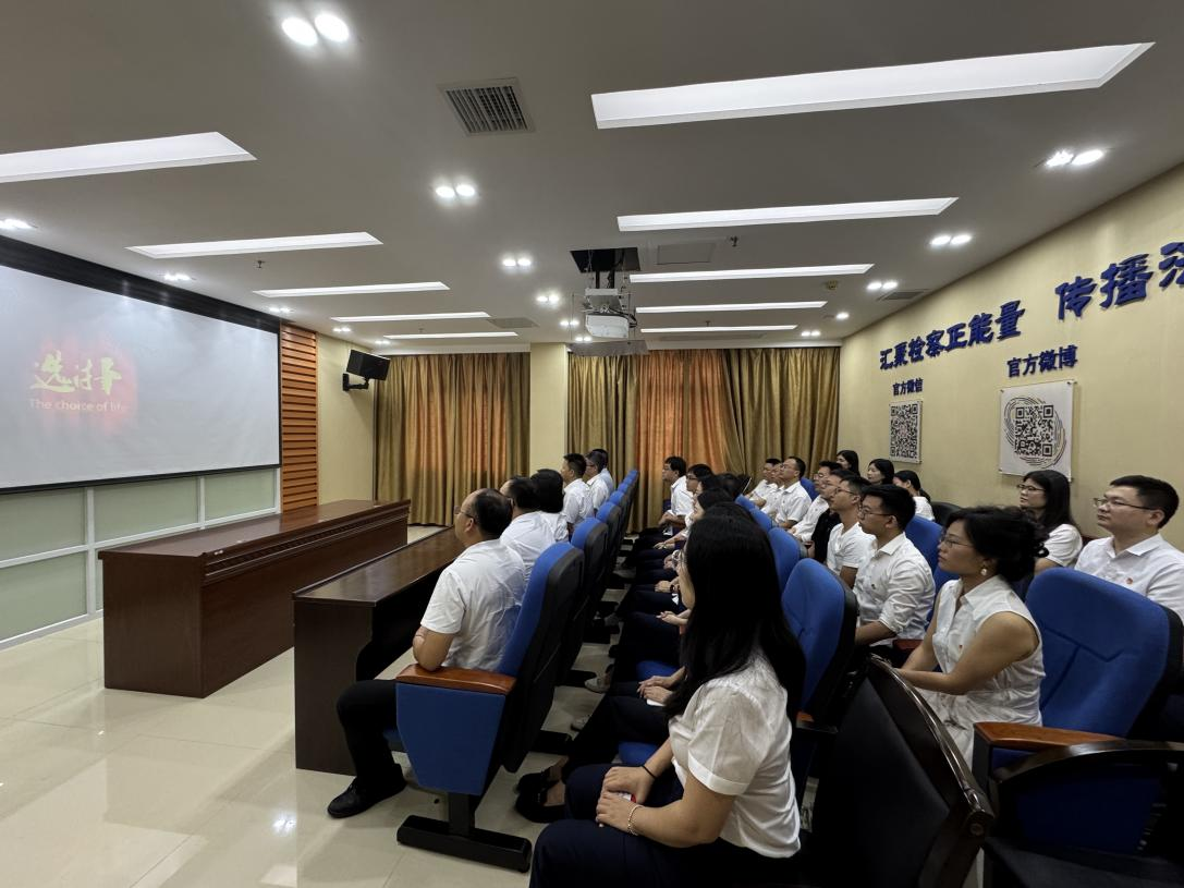 在廉政文化展示厅,党员依次参观“重拳出击惩贪腐”“剖案析理警世人”“护花—全面预防花绽放”三大展区,聆听现场讲解,观看违纪违法干部警示案例、忏悔录像及历代名人廉洁家风故事展陈。随后,集中观看由赣州本地真实案例改编的微电影《选择》,以 “身边人、身边事” 为切入点,接受 “沉浸式” 警示教育,深刻感悟违纪违法对个人、家庭及社会的危害。