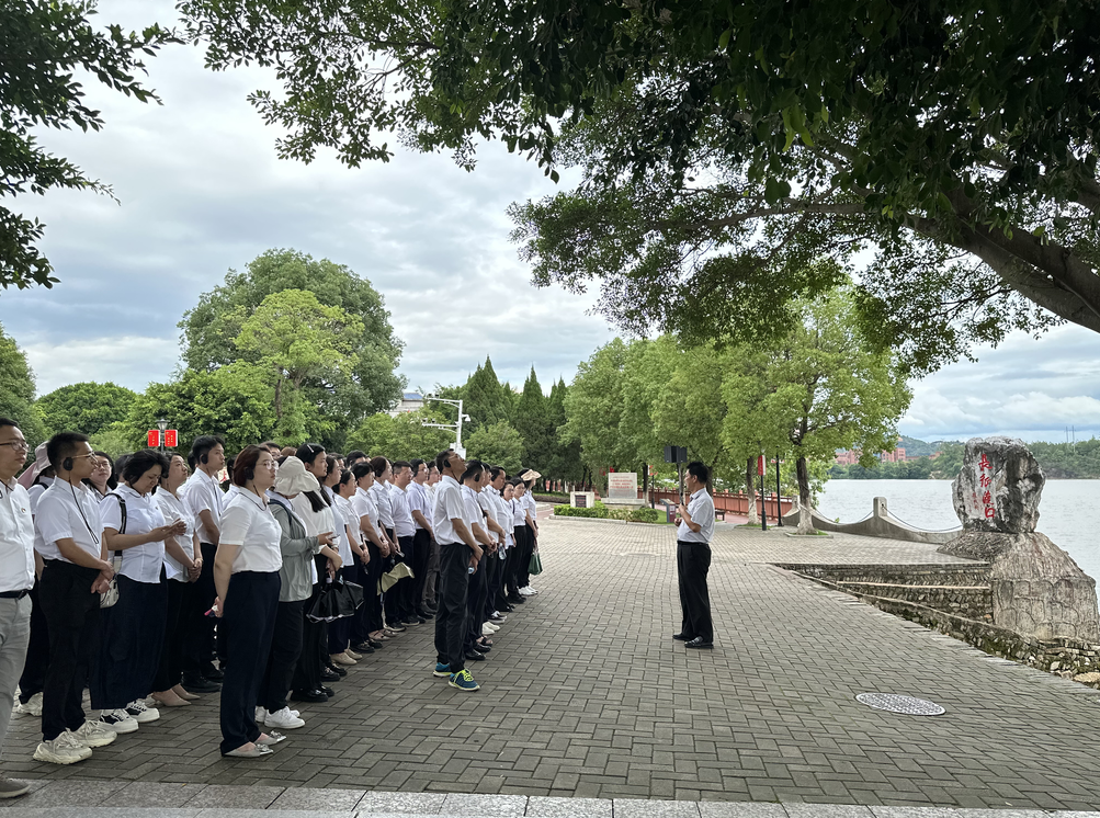 6月20日,赣州发展基金公司党支部与江西国控基金公司党支部赴中央红军长征集结出发地——江西于都联合开展“追寻红色足迹 传承红色基因 践行初心使命 共创企业辉煌”红色走读活动。此次活动以传承红色基因感悟长征精神为主线,深度融合金融行业特色与党建联建优势,在红色历史中汲取奋进力量,为探索“党建+金融”赋能实体经济注入强劲动力。江西国控集团党委副书记、副董事长、总经理匡兵,江西国控集团党委委员、财务总监邹雪亮,江西国控基金公司党支部书记、总经理吴晓聪,必赢242net官网副总经理孟佳聪等参加活动。