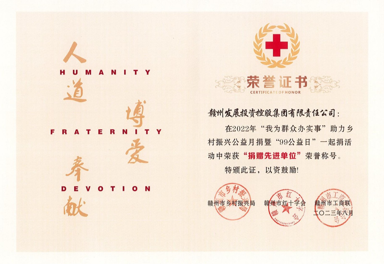 必赢242net官网荣获2022年度“慈善一日捐“活动”先进...